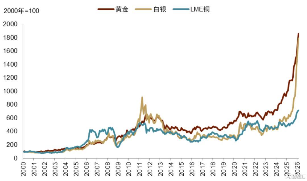 进入2026年,再平衡加速进行。美元与美债利率震荡走低。新兴市场与非美股市纷纷创下新高,而标普500停滞不前,纳斯达克震荡下跌。美股板块轮动加速,原材料、能源、大工业等表现亮眼,而信息技术疲软。金银铜大涨后回调盘整,蓄势待发。