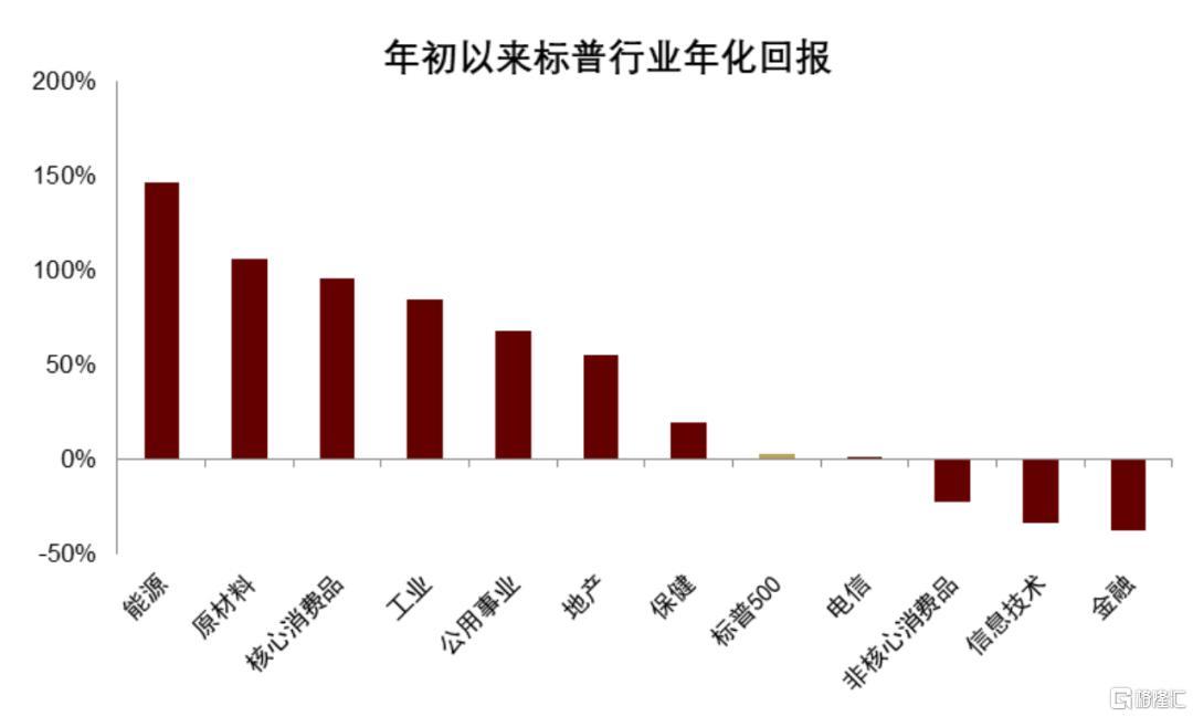 图表3:今年以来标普能源、原材料、工业领跑