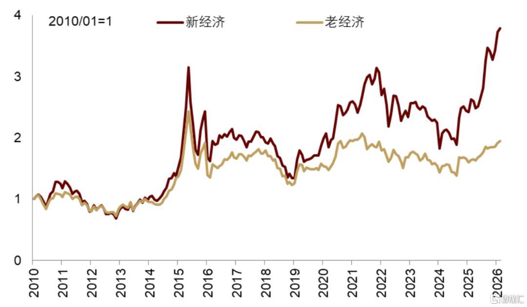 注:新老经济指数为相关行业等权重指数 资料来源:Wind配资炒股在线,中金公司研究部