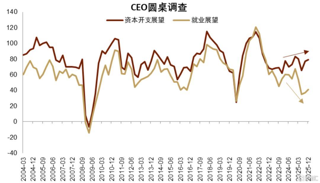 这些观点我们基本维持不变,结合过去一年的最新变化,我们对股市板块再细化下。在美国再工业化和“再武装”化、及财政主导&金融抑制下,周期上,美国名义经济周期有望重启向上(详见《2026全球市场展望:泡沫加速》),即制造业PMI和PPI同比增速有望从底部开启上行周期,利好股市盈利。趋势上,美国名义经济增速可能长期保持较高,但愈发由投资而非消费驱动,即长期的“K型”分化:一边是投资如火如荼、名义GDP增速保持高位,一边是就业与消费不温不火甚至疲软。这背后反映了在美国政策干预下的较长期资源转移:从居民端消费端趋势性转向生产端投资端。