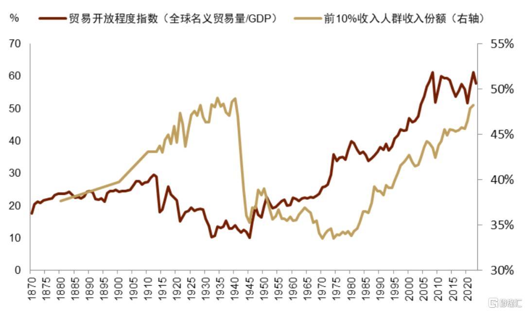 图表6:过去四十年,伴随全球化深入,美国贫富分化走扩至二战以来最高水平