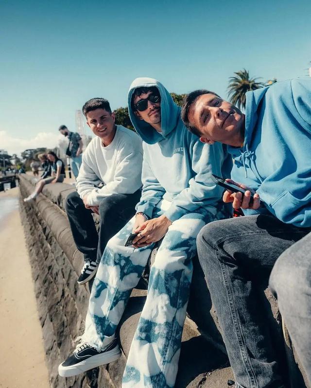 跟朋友在一起时就秒变开朗大男孩,帽衫搭配牛仔裤,潮流感满满。