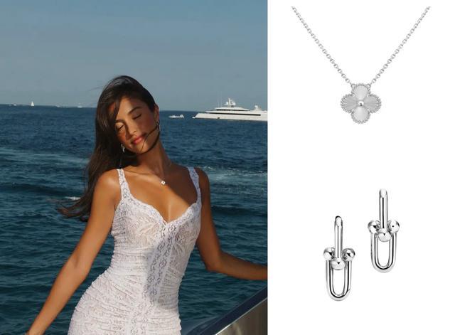再到梵克雅宝四叶草项链,Tiffany HardWear耳环,她总能戴出一种“静奢风”的高级感。