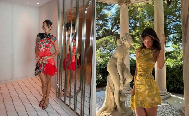 从牡丹花刺绣到丝绸材质,把国风元素玩转自如。之前到中国香港旅游,发Ins时甚至还用了中文文案:“已经开始想念香港了。”