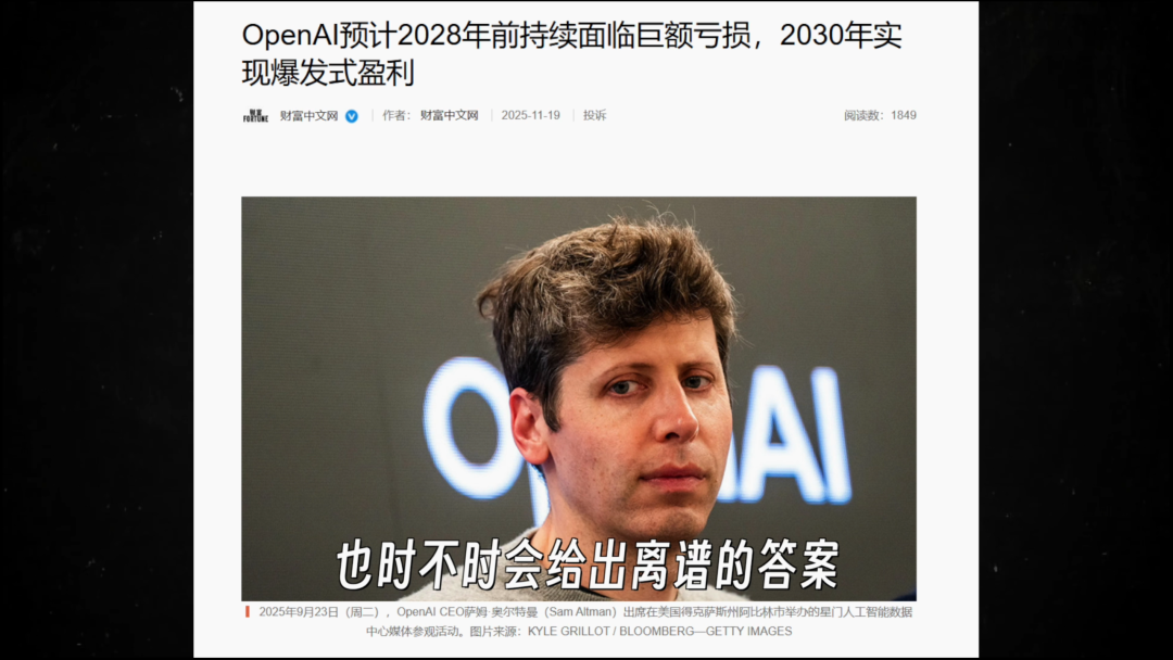 就连行业顶流的OpenAI,在2025年都要亏上80-115亿美元。强如ChatGPT,也时不时会给出离谱的答案。谁也不敢说,现阶段的AI是不是一桩稳赚不赔的买卖。
