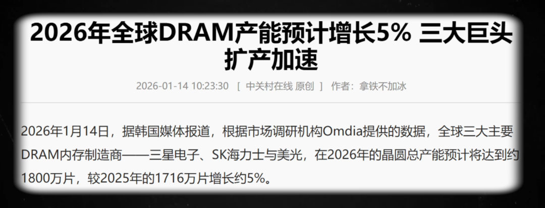 公开信息显示,2026年内存产能扩张上,海力士是8.5%,算是三家里面最高的,三星才4.5%。