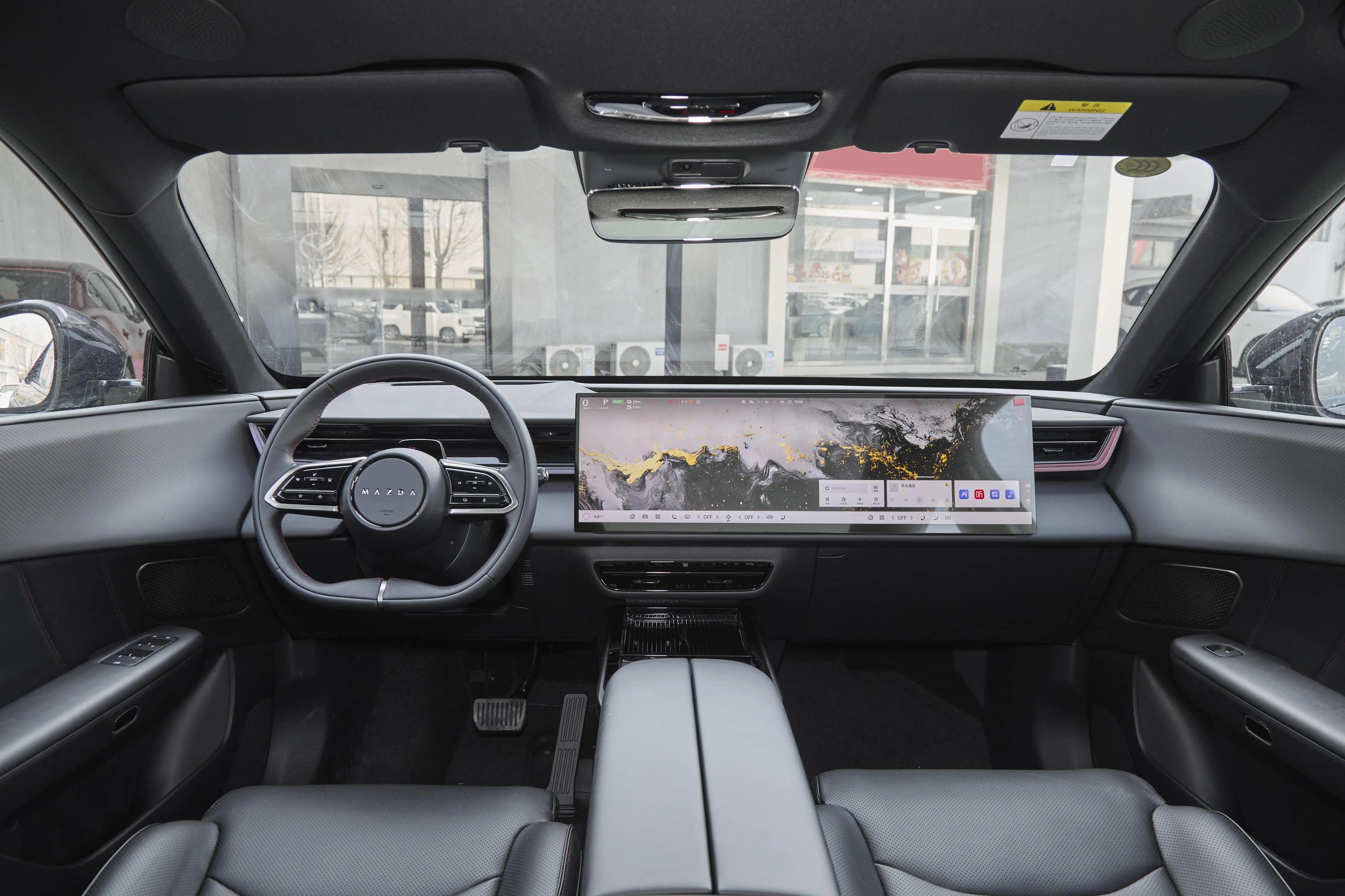 内饰部分,长安马自达EZ-60的科技感和实用性平衡得很好,没有过度堆砌屏幕,却能满足日常使用需求。最显眼的就是那块26.45英寸的悬浮式中控屏,一直延伸到副驾位置,屏幕边框很窄,视觉效果很清爽,操作起来也比较流畅,没有明显的卡顿。而且全车标配50英寸AR-HUD增强现实抬头显示系统,不用低头就能看到车速、导航等关键信息,开车的时候更省心。除此之外,电子式怀挡的设计很简洁,节省了中控区域的空间,还有50瓦的手机无线充电,日常放手机充电很方便,不用再到处找充电线。